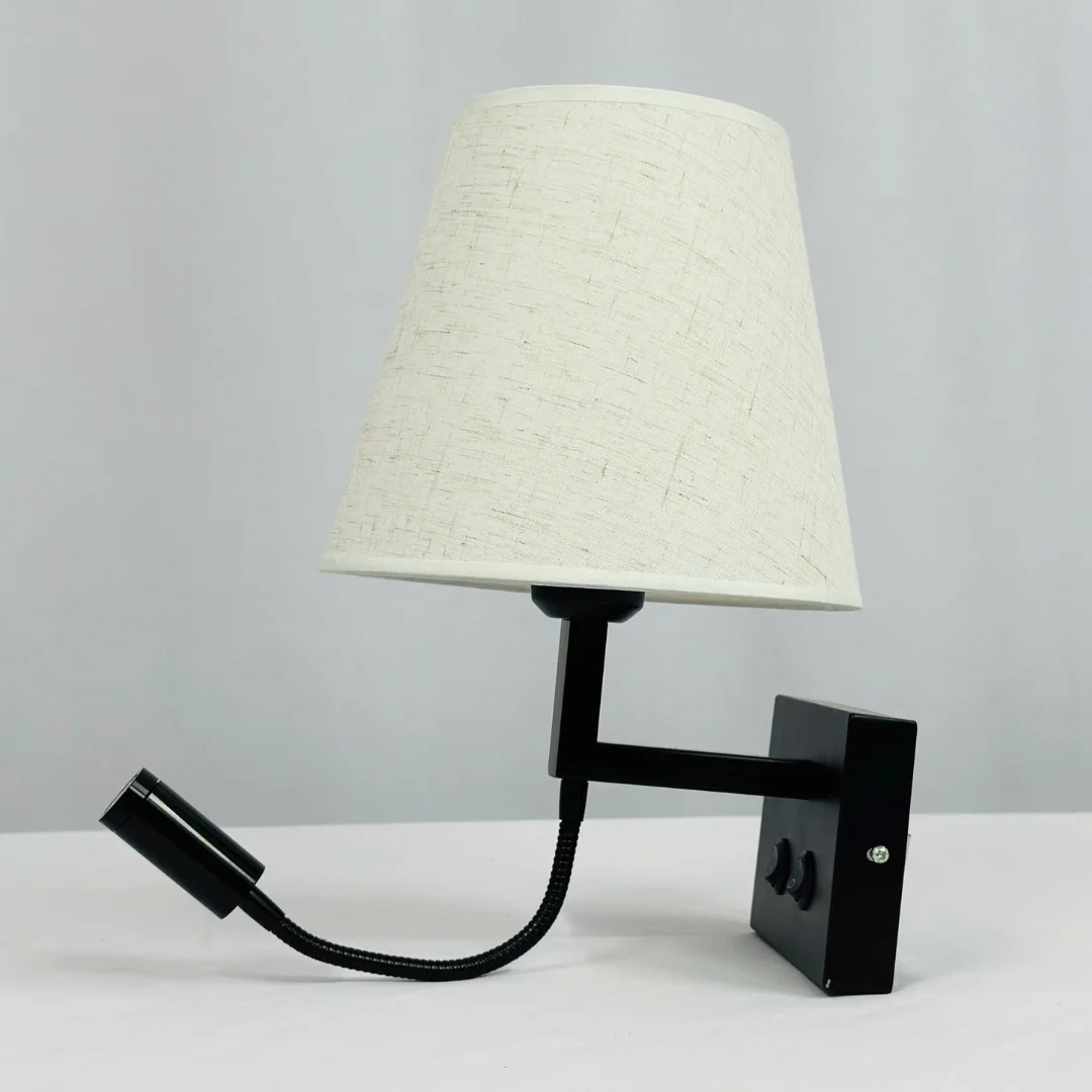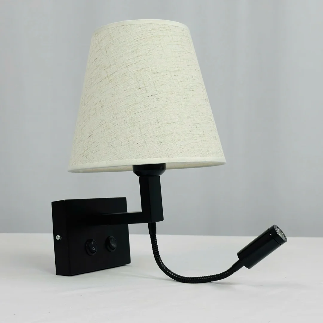 Đèn Tường VDN507 có thiết kế kết hợp giữa phần đèn chính và đèn đọc phụ trong cùng một sản phẩm, mang lại cảm giác hiện đại và rất thực tế. Phía trên là chao đèn vải dáng loe nhẹ, tạo vẻ mềm mại và thanh lịch khi gắn lên tường. Phía dưới là tay đèn phụ dạng cong, đầu đèn nhỏ gọn giúp tổng thể sản phẩm trông gọn mà vẫn có điểm nhấn rõ ràng.