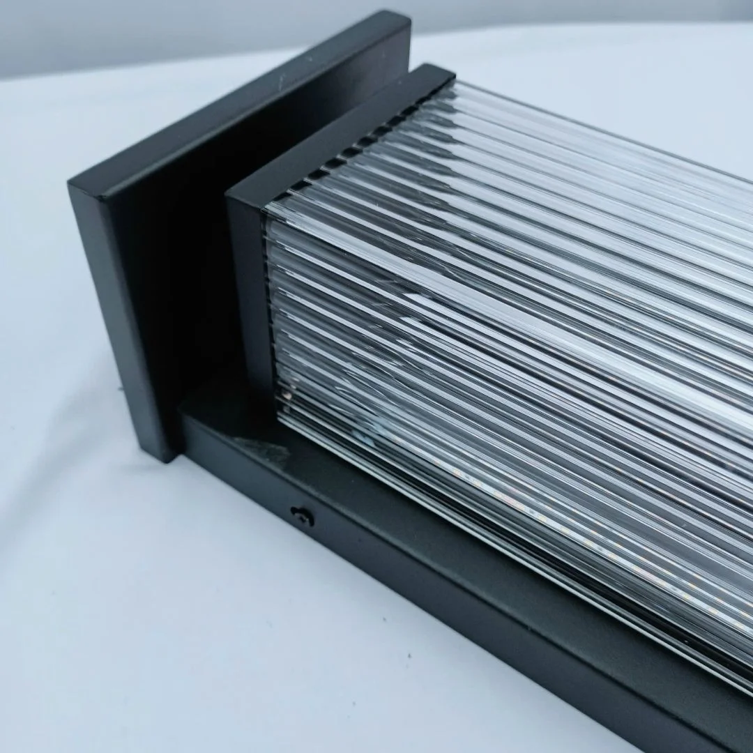 Thân đèn sử dụng kim loại sơn tĩnh điện màu đen chắc chắn, bề mặt mịn, hạn chế trầy xước và ít bám bụi. Phần tán sáng được làm từ nhựa/kính trong suốt dạng nan dọc, giúp ánh sáng phân bổ đều xung quanh nhưng vẫn chống chói. Việc sử dụng LED ánh sáng vàng giúp tiết kiệm điện, đồng thời mang lại cảm giác ấm áp, dễ chịu cho không gian.