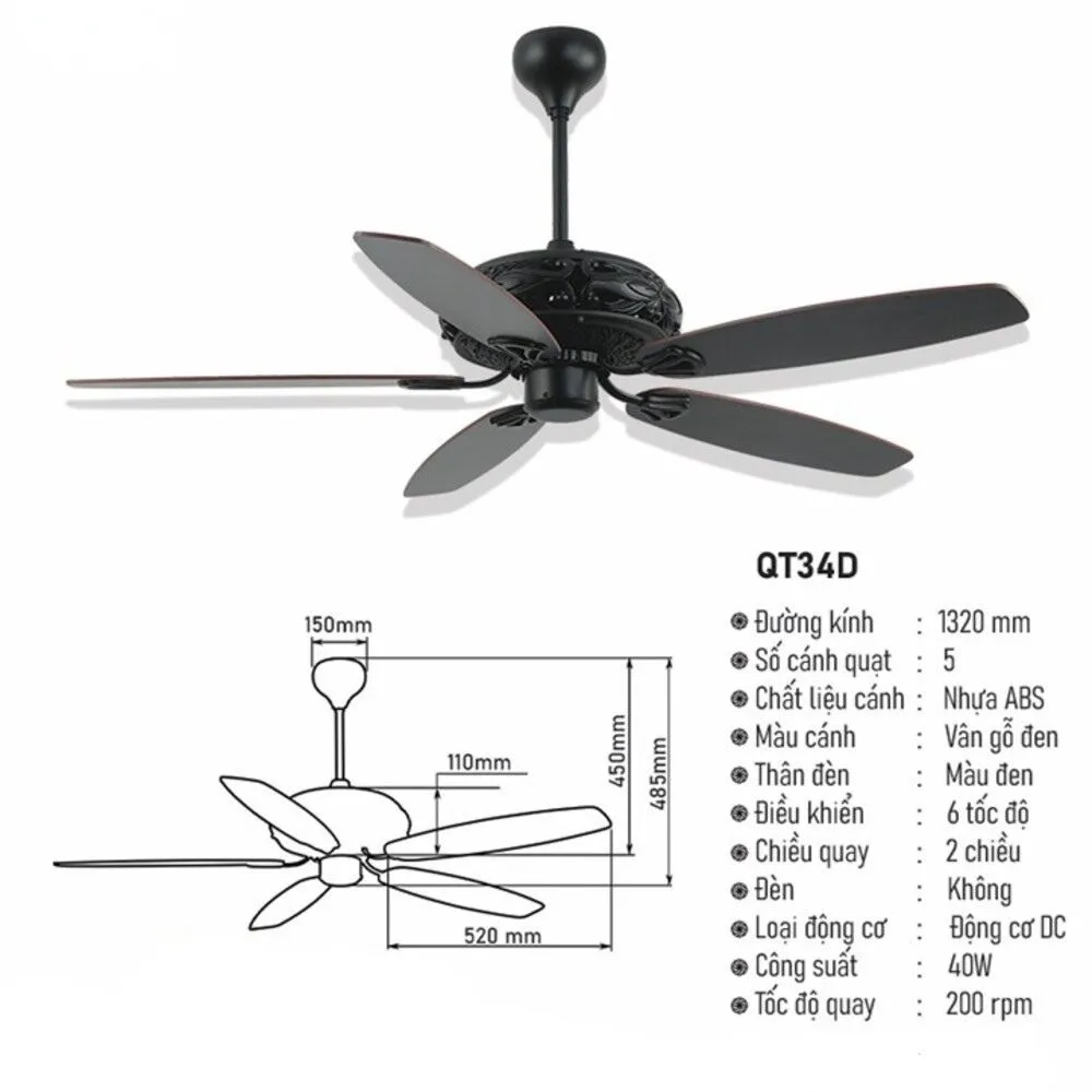 Quạt Trần Amaria QT34 – Cảm Nhận Sự Tinh Tế Trong Mỗi Chi Tiết