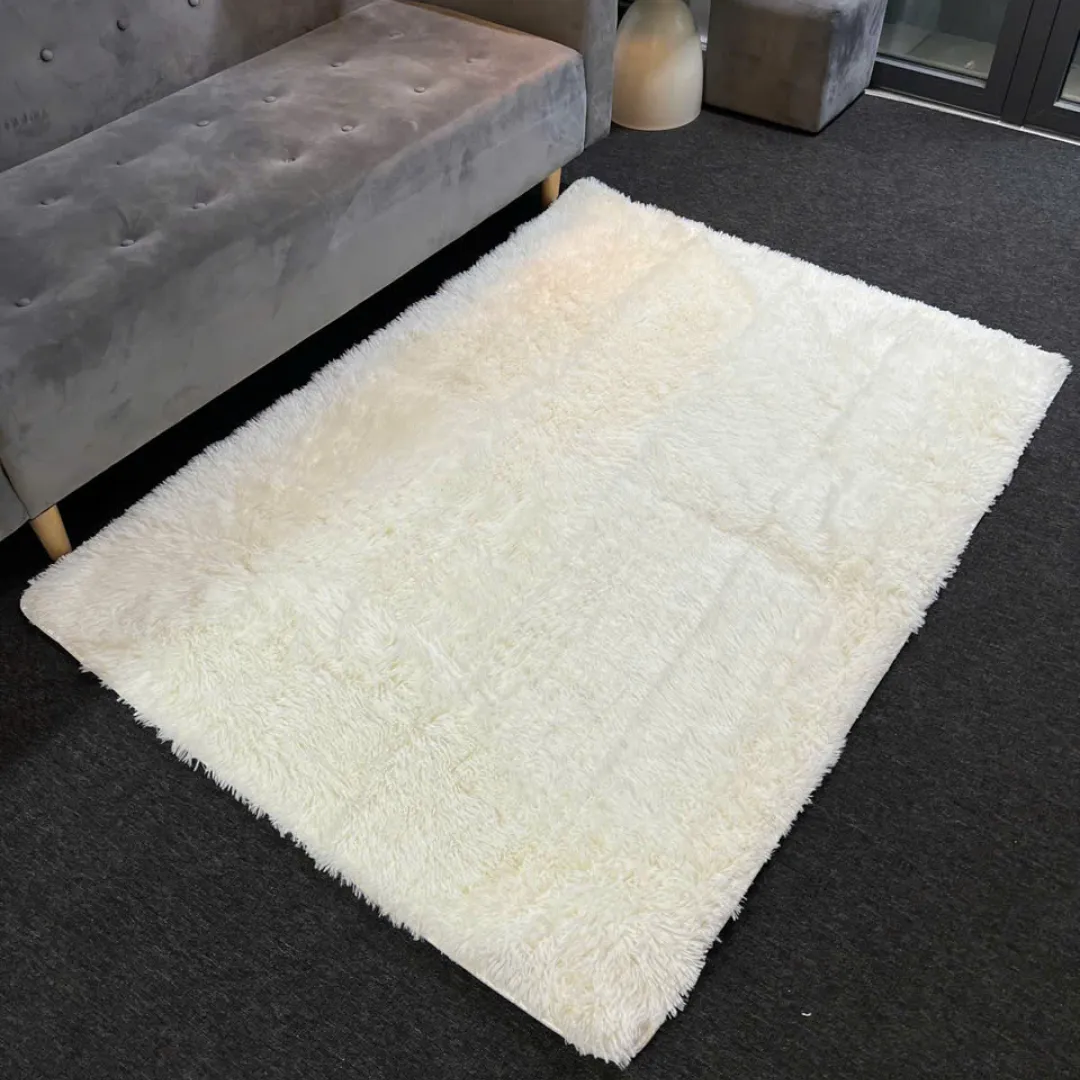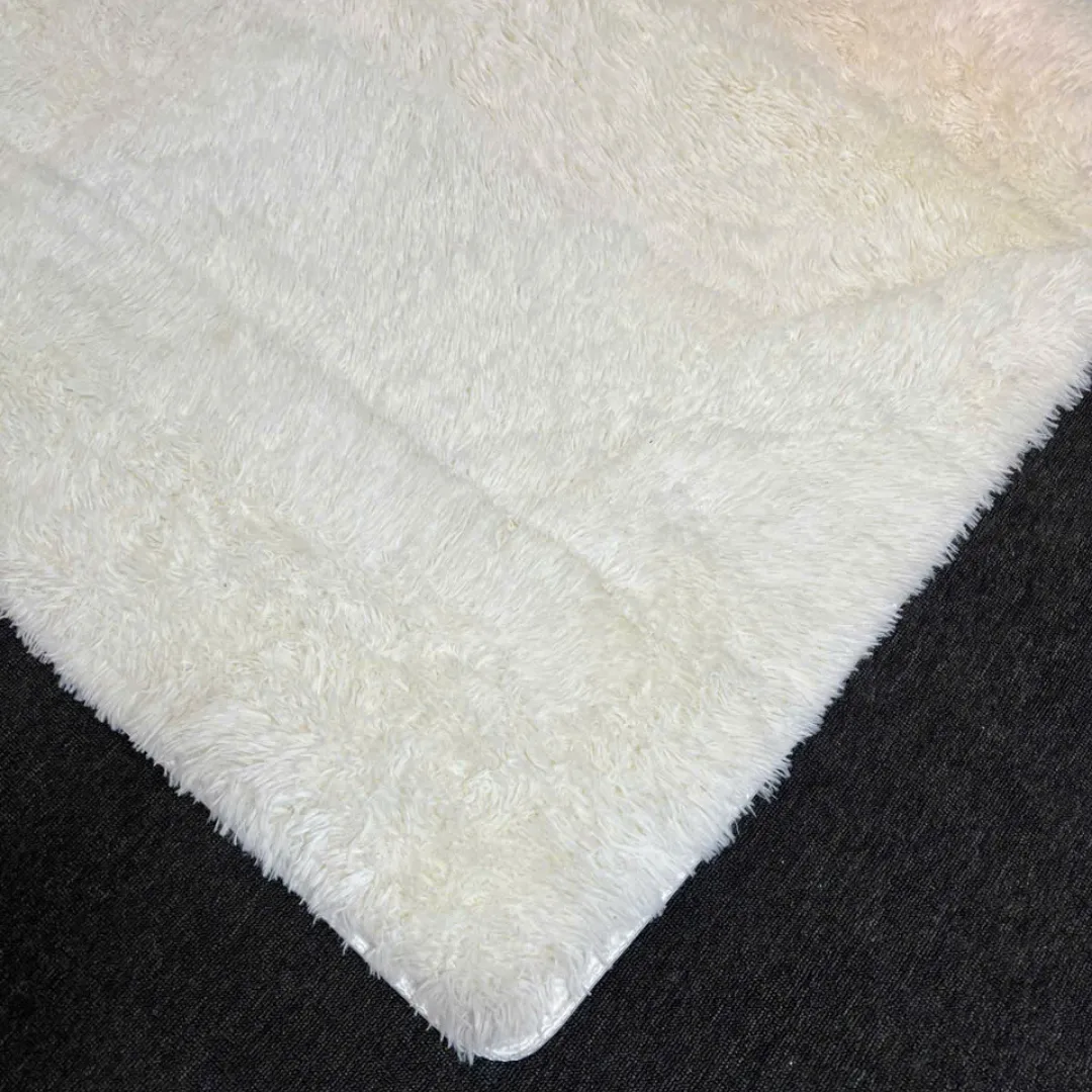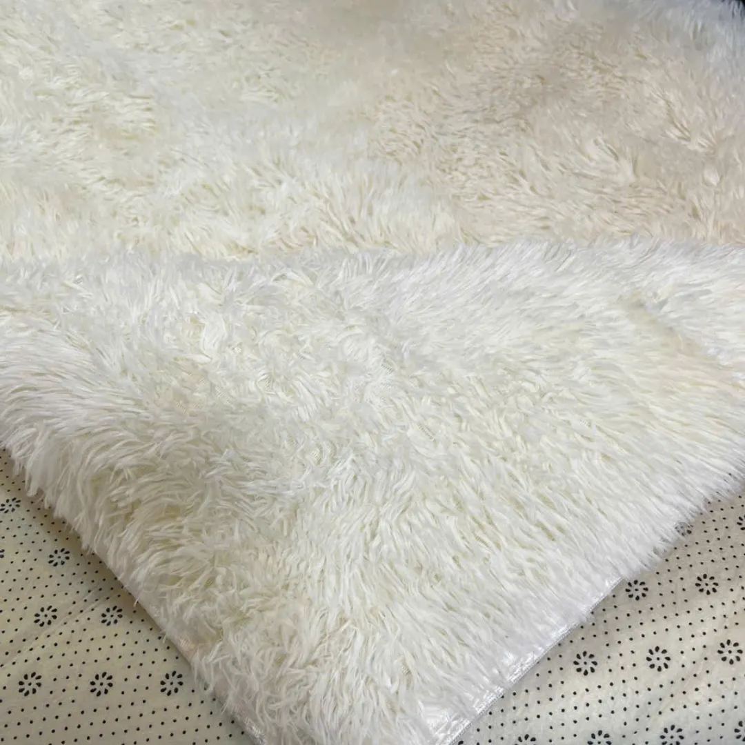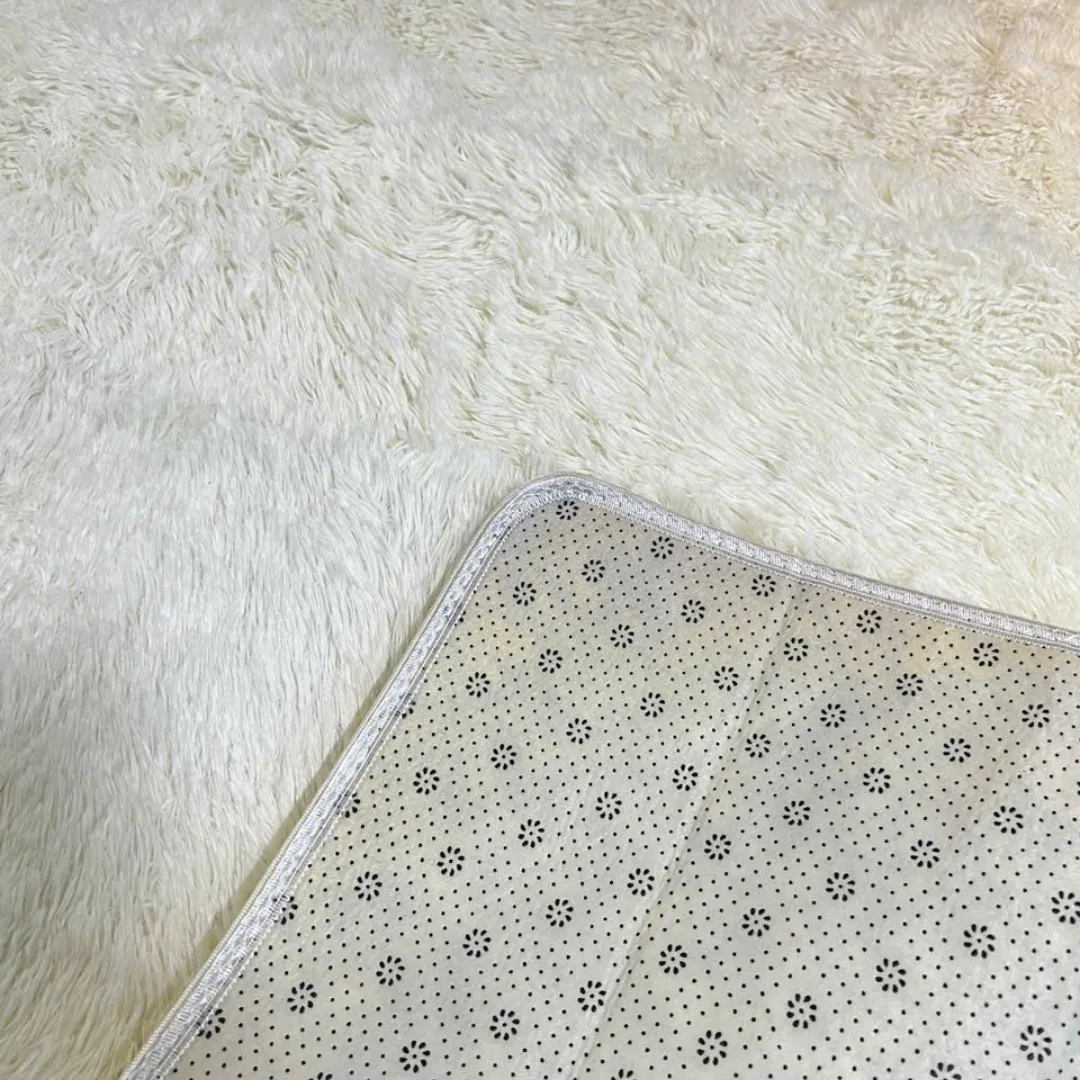 Thảm lông mềm trắng được sản xuất từ sợi lông tổng hợp Cotton pha Poly cao cấp, có độ dày và độ mịn cao. Khi chạm tay hoặc bước chân lên thảm, bạn sẽ cảm nhận rõ sự êm ái, dễ chịu, phù hợp để thư giãn, nghỉ ngơi hoặc sinh hoạt hàng ngày.