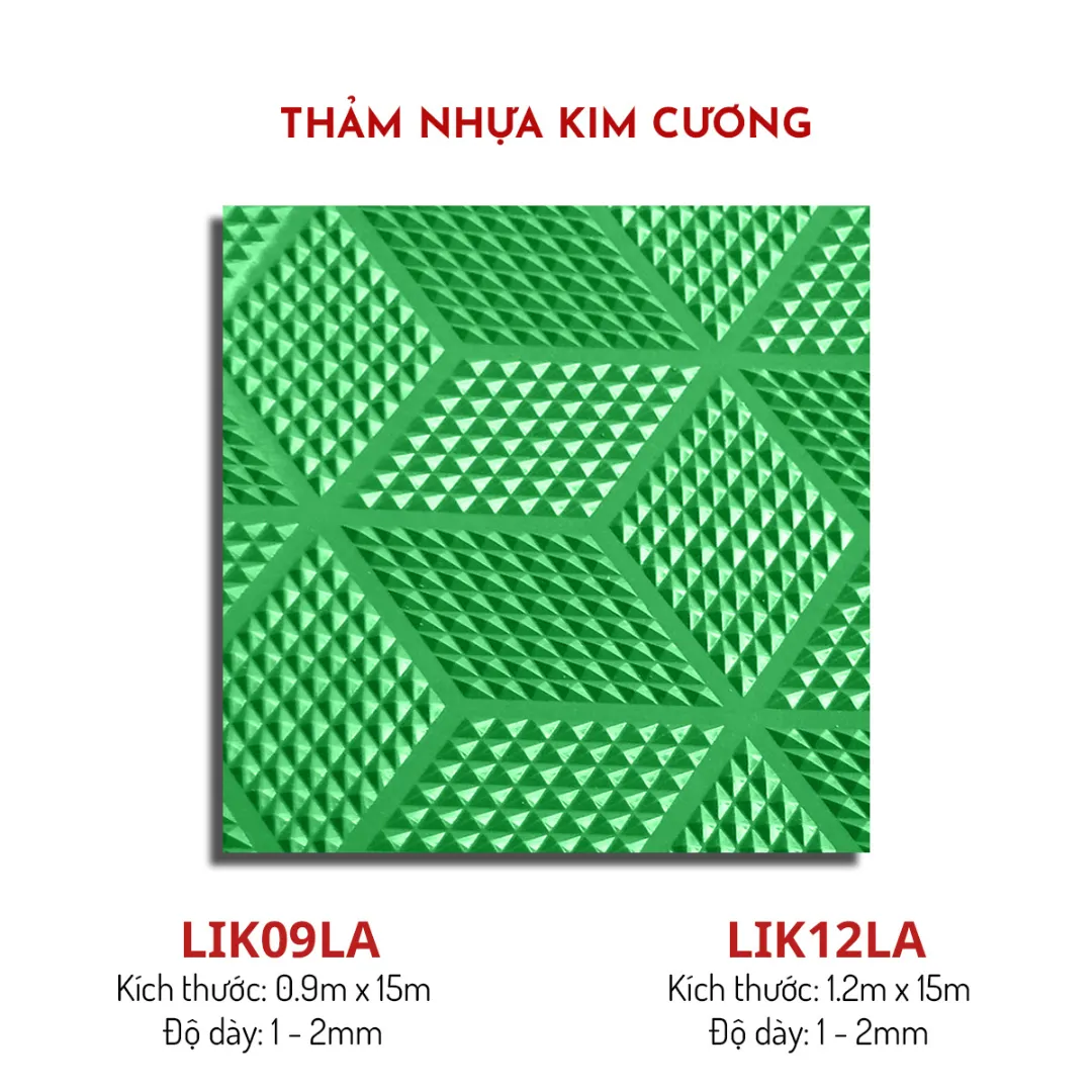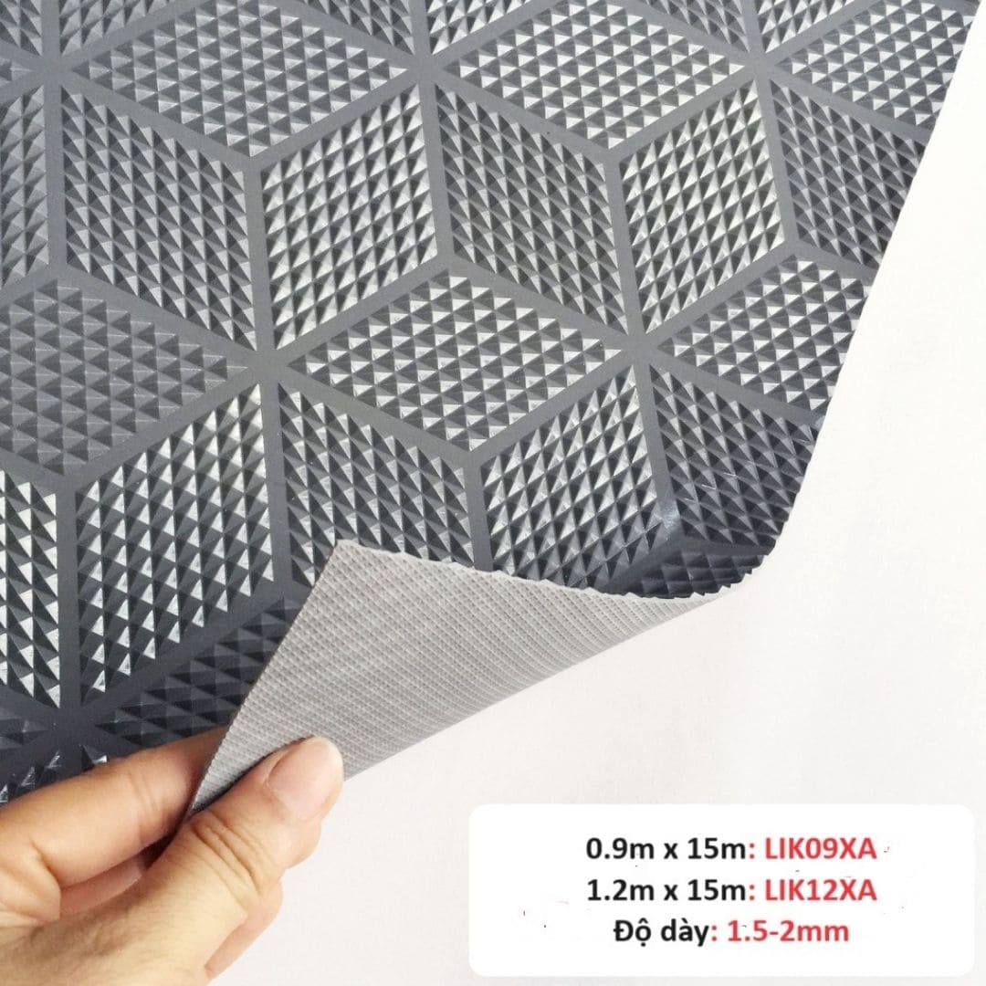 - Kích thước: thảm cuộn tiêu chuẩn 0,9m x 15m và 1,2m x 15m
