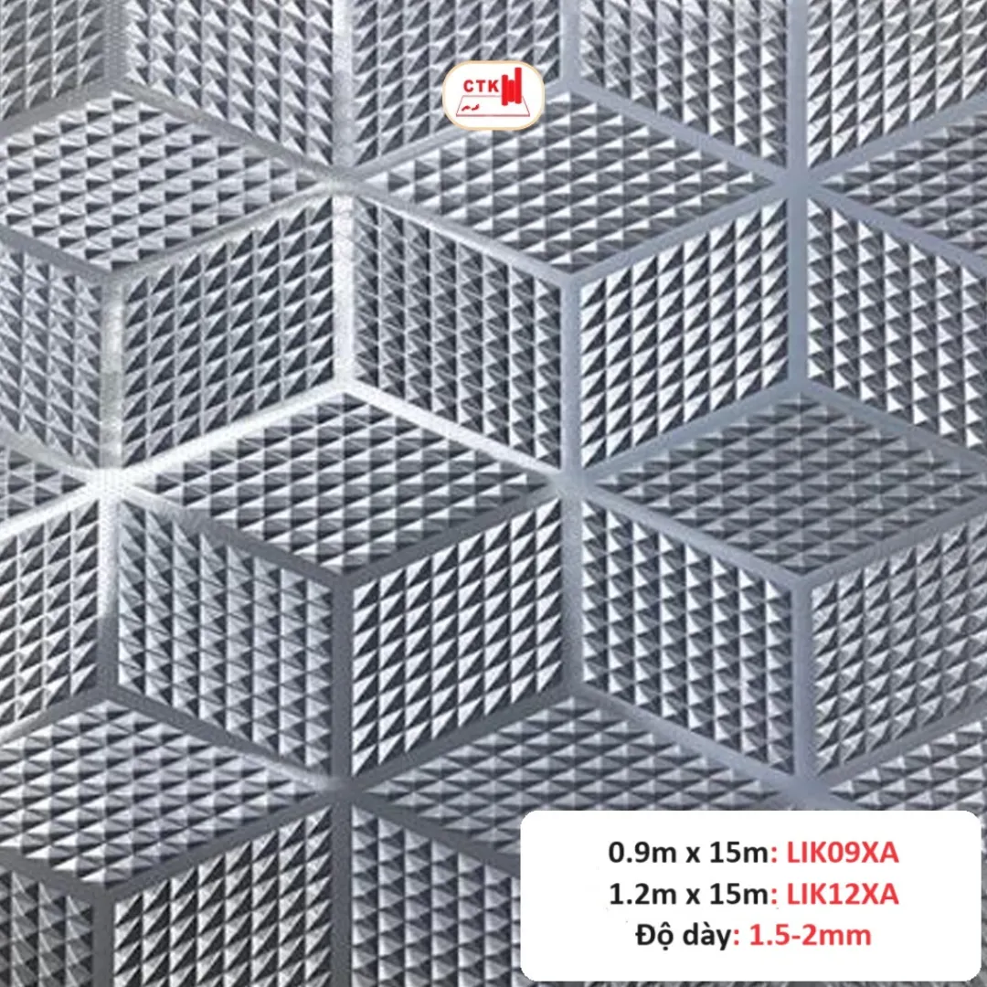 Với thiết kế hoa văn nổi 3D hình kim cương, thảm nhựa không chỉ mang đến sự sang trọng cho không gian mà còn đóng vai trò như một tấm thảm chống trơn hiệu quả. Sản phẩm được làm từ chất liệu PVC cao cấp đảm bảo độ bền màu và không xẹp lún, ngay cả dưới tác động thường xuyên.