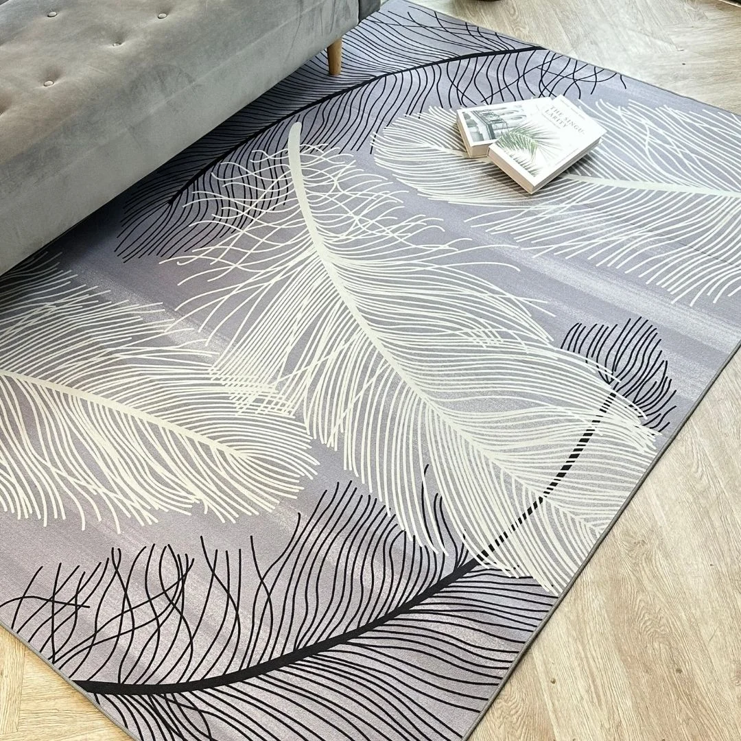 Thảm Sofa In 3D SFINH3 sở hữu họa tiết lá lông vũ mềm mại, trải dài tự nhiên trên nền màu xám khói hiện đại. Các đường nét mảnh và uyển chuyển được in 3D sắc nét tạo cảm giác nhẹ nhàng, thanh thoát như một làn gió lướt qua không gian.