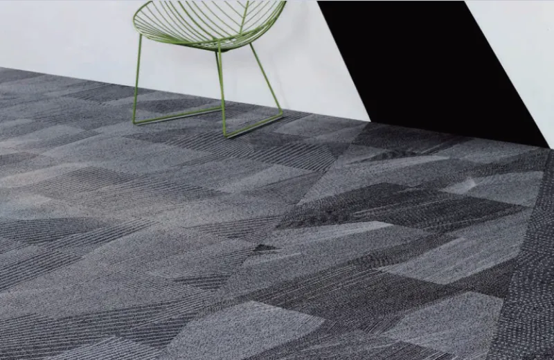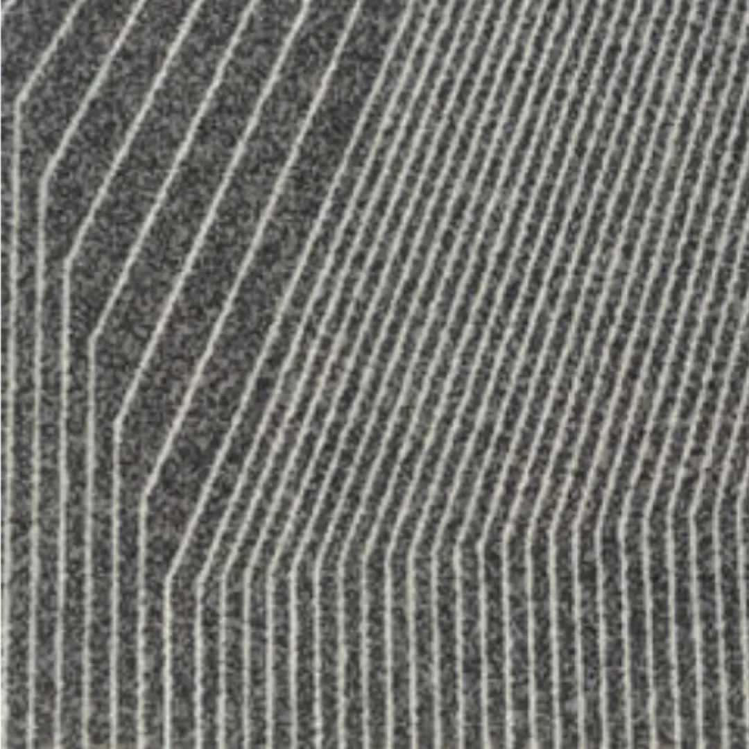Thảm Tấm Văn Phòng TTHD100VA có họa tiết dạng đường line cắt lớp tạo hiệu ứng thị giác mạnh, giúp không gian trở nên cuốn hút và sang trọng hơn. Sự kết hợp màu sắc xám – đen mang lại chiều sâu, phù hợp để làm thảm trang trí hoặc thảm trải sàn cho văn phòng chuyên nghiệp.